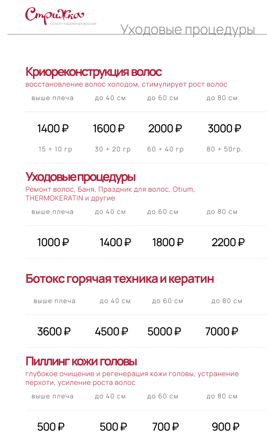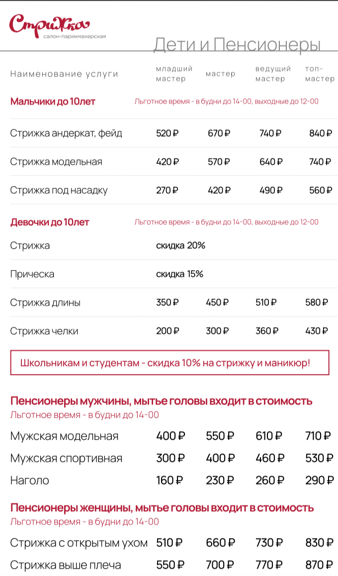 ПАРИКМАХЕРСКИЕ УСЛУГИ